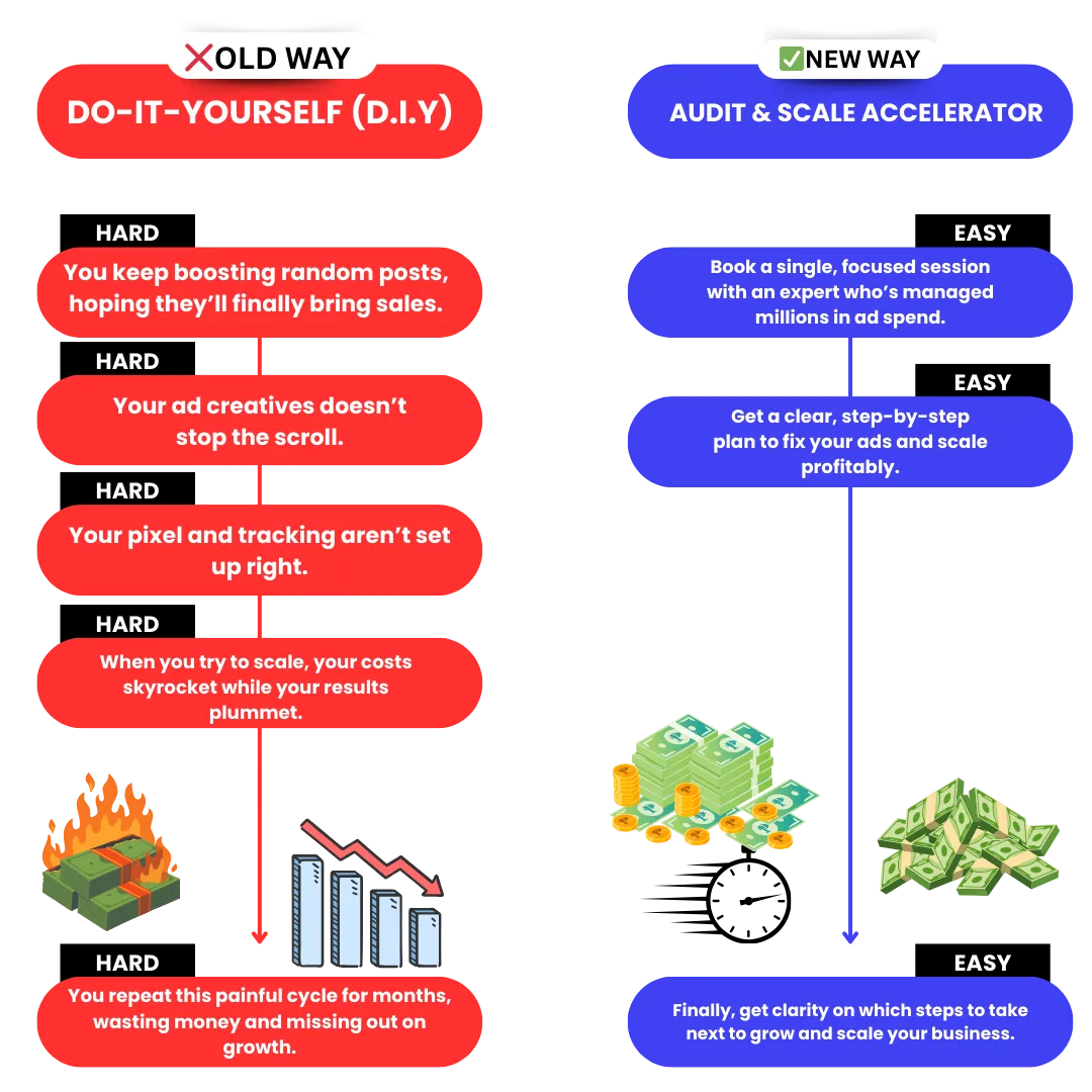 If you’re ready to leave the old ways behind and start running ads that truly bring results, the Audit & Scale Accelerator is your next step.